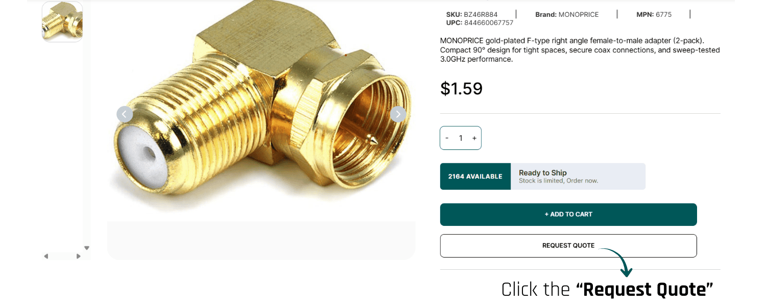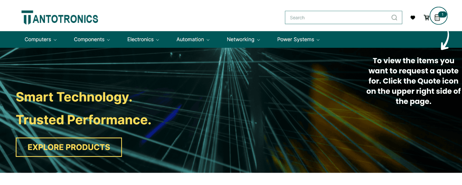 Search Our Extensive Product Catalog --> Add Product to Quote --> Submit Quote Request